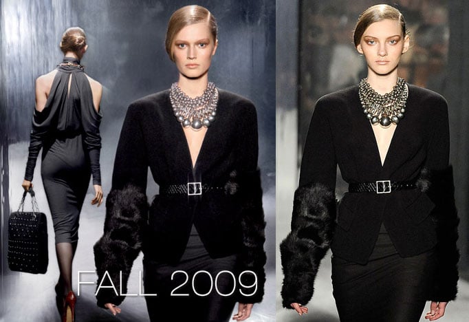 The set of Fall 2009 ads that appear on the front page of Karan's website all feature Toni Garrn, one in the look she wore down the runway. In the other two ads, it appears that Toni's head was Photoshopped onto the bodies of Anya Kazakova and Sasha Pivovarova — the stances on both bodies are identical to those in the runway photos of the collection on the website.