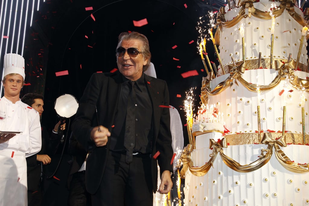 Kylie Minogue performed, the walls were lined with Mert Alas and Marcus Piggott's images of models in Cavalli, and Heidi Klum introduced the designer as a four-tier, 10-foot birthday cake covered in sparklers was wheeled onto the stage. But even through all that, Cavalli, almost 70, admitted he's not the party animal he used to be: “Don’t say it, don’t say it, please, because the people should still dream with me,” he said. “The young should think that, instead of sparkling water, I drink Krug, or that I still smoke 10 Cuban cigars every day.”