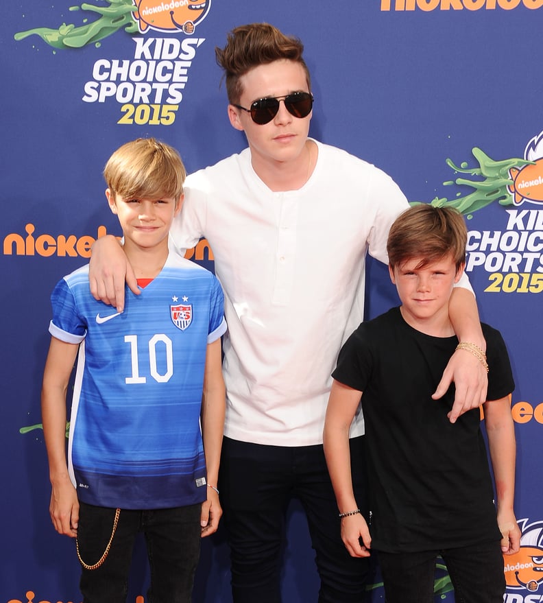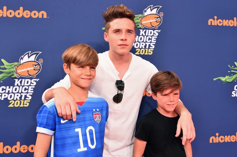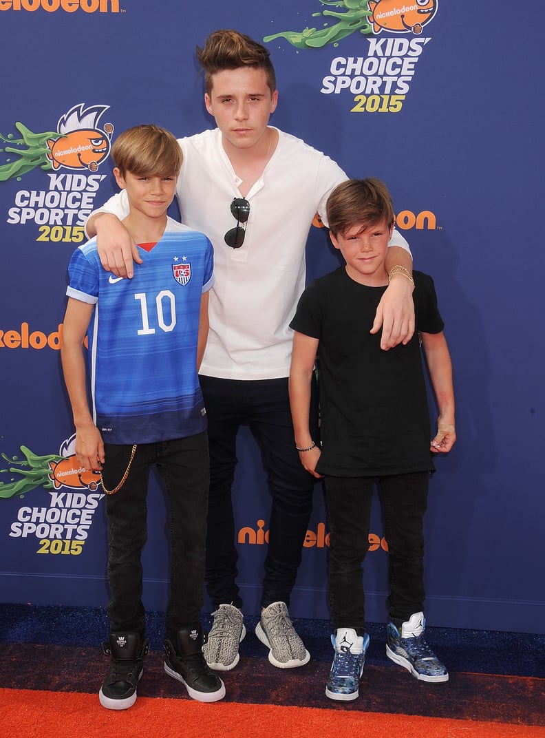 If you weren't sure if the Beckham boys take after their famous dad, their appearance at the Kids' Choice Sports Awards in LA on Thursday will definitely change your mind. Brooklyn, Romeo, and Cruz all came out to walk the orange carpet on July 15 and managed to look cooler than everybody else with very little effort. The brothers kept things casual in jeans, sneakers, and t-shirts, and Brooklyn made sure to keep a protective arm around his younger siblings. The 16-year-old, whose circle of famous friends is already quite impressive, even threw on a pair of sunglasses at one point because he probably couldn't handle the amount of people admiring him.