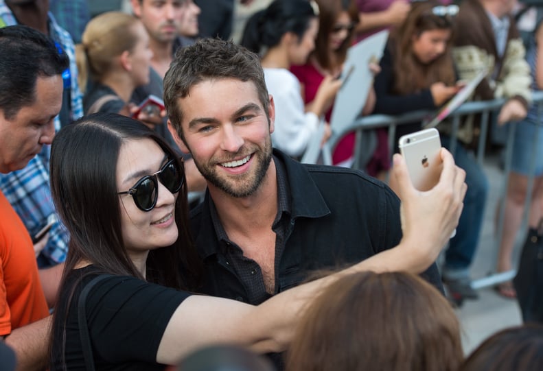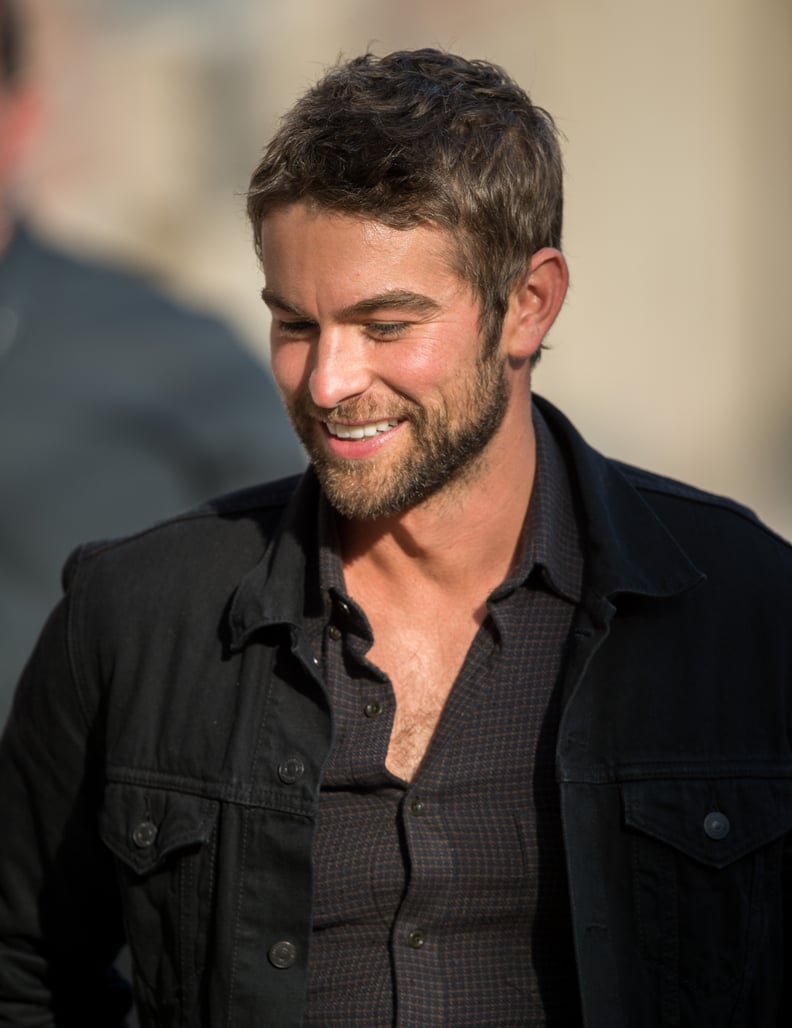 Chace Crawford was spotted looking as handsome as ever on Monday when he made his way into Jimmy Kimmel Live for an appearance. The actor, who is busy promoting his new show, Blood & Oil, took a few minutes to greet an excited group of fans who had gathered outside the show doors. Chace, who looked dapper in jeans and a jacket, flashed his gorgeous smile as he waved and took selfies with a few women. Keep reading to see more of Nate Archibald in all his scruffy glory, and then check out this Gossip Girl reunion in August.